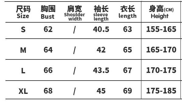 Size chart is for reference only, there may be a little difference with what
